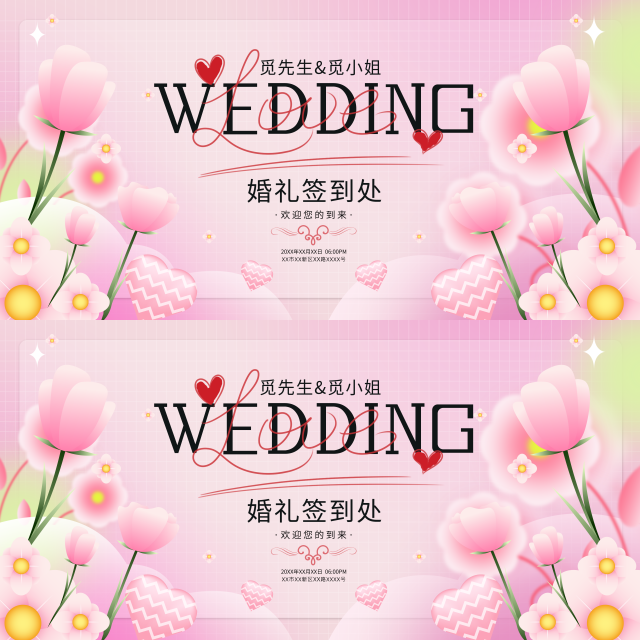 微立体风格2024粉色花卉婚礼签到处展板
